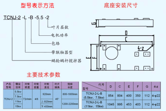 TCNJ-2-L-B環面蝸桿攪拌器具有承載能力大,傳動效率高,使用壽命長等特點,可廣泛應用于各種機械傳動。其環境溫度為-40-50度,輸入軸最大轉速一般為1500轉/分,特殊需要時可達3000轉/分,可正反向運轉。